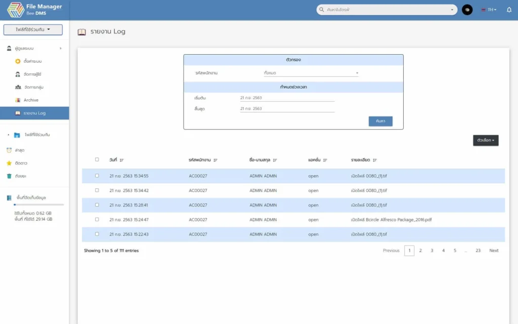 ระบบจัดเก็บเอกสาร BeeECM มีระบบจัดการ LOG สามารถรู้ว่าเอกสารนั้นถูกดำเนินการโดยใคร สามารถตรวจสอบได้อย่างสะดวกสบาย และยังง่ายดายอีกด้วย